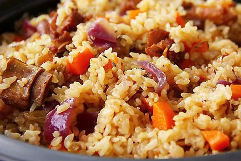 自从新疆师傅加入礼信年年承包食堂后,就一直致力于推出新疆最具代表性的美食。羊肉手抓饭这道新品的推出在餐厅掀起了一段热潮,让客人是吃了还想吃,我们选用新鲜的胡萝卜、米饭、羊肉、少许的洋葱来搭配制作完成,炒出的米饭一颗颗的非常饱满,咸香的口味非常受顾客喜爱。由于是第一次推出,客人见了新鲜,都抱着试一试的态度盛一碗,有的客人甚至连要了两份,都感叹好吃!