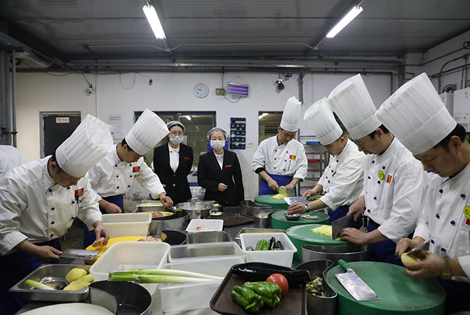 4月20日下午,4月份切配调薪比赛在博爱医院项目举行,比赛内容是姜末、胡萝卜片、白萝卜丝、鸡丝。共有24位切配厨师参赛,他们要按照规定在40分钟内完成所有出品。赛后,由督导老师根据出品长度、厚度、食材形态等方面进行评判。