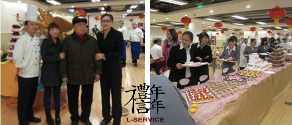 12点刚过,应着火热的就餐场面,82岁的王老(蓝色港湾老板的父亲)在随从的搀扶下也来到展台前,长长的展台王老从头走到尾,还不时和服务人员打招呼:“你们辛苦了,美食节做得好,品种很多嘛、真漂亮、这简直就是一场饕餮盛宴,好好好!”随后王老主动邀请经理厨师长一起在展台前合影留念,并再三叮嘱,这是你们成绩的体现,一定要留作纪念。同时王老还不断的鼓励大家,你们是好样的,员工餐厅办得很好,有你们这样的团队,我很放心!